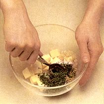 Разотрите масло, чеснок, цедру лимона, петрушку, соль и перец. Поместите смесь в кондитерский шприц с простой насадкой диаметром 0,5 см.